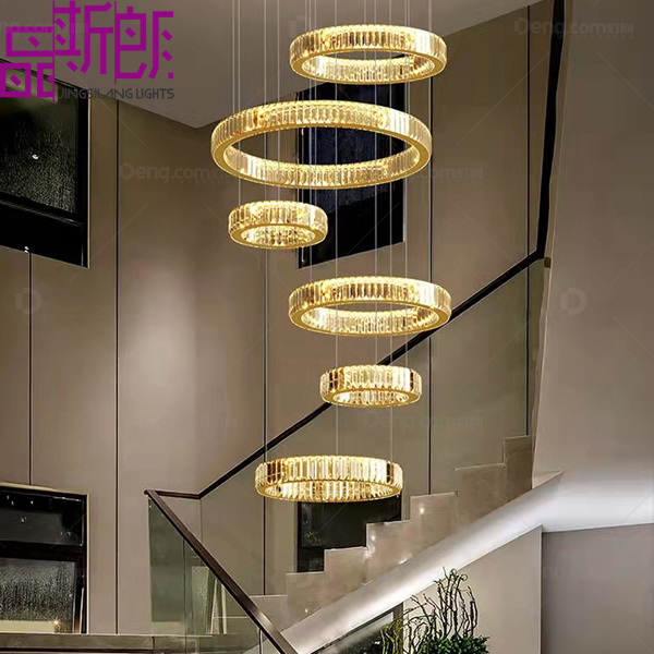 不锈刚+水晶别墅复式高楼客厅吊灯