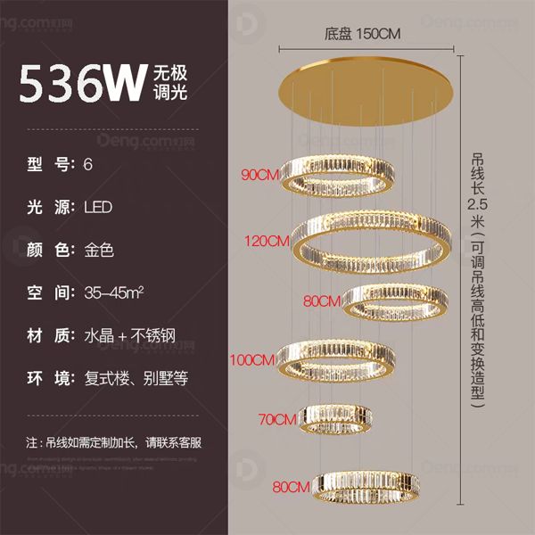 晶斯朗水晶高层/复式电镀轻奢吊灯 头数:6头 型号:80020-6圈150盘