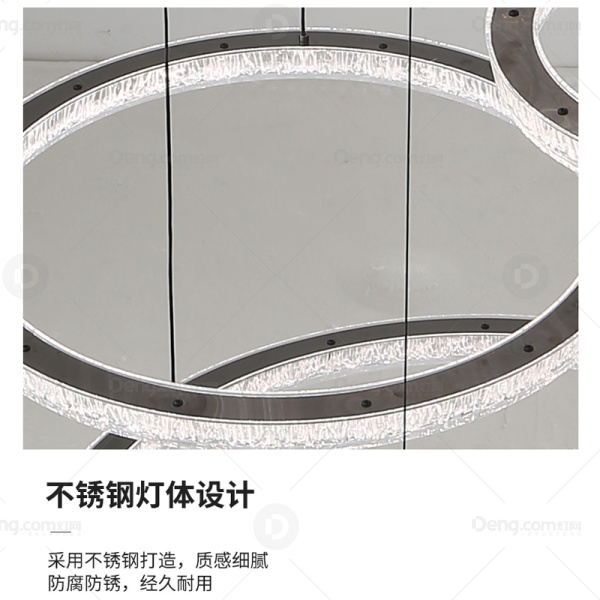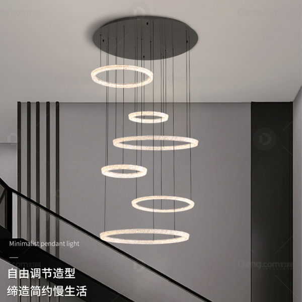 铜觅灯饰不锈钢高层/复式其他/other现代简约吊灯 头数:1头 型号:5851-600+400+800+400+600+800六环(三色全光谱)