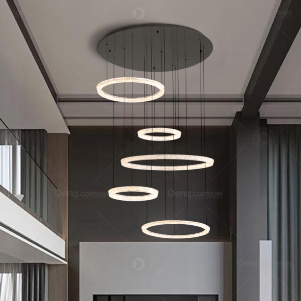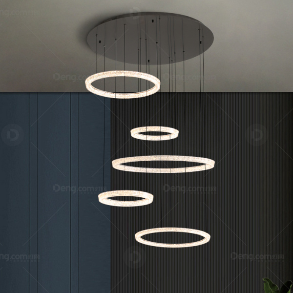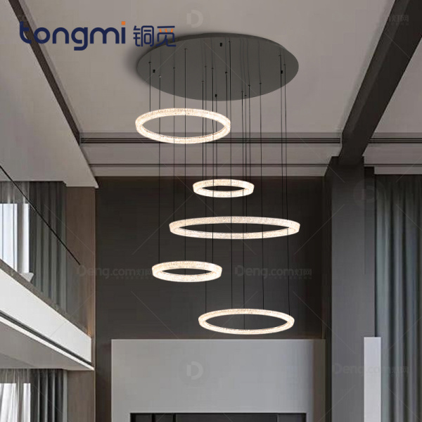 铜觅灯饰不锈钢高层/复式其他/other现代简约吊灯 头数:1头 型号:5851-600+400+800+400+600五环(三色全光谱)