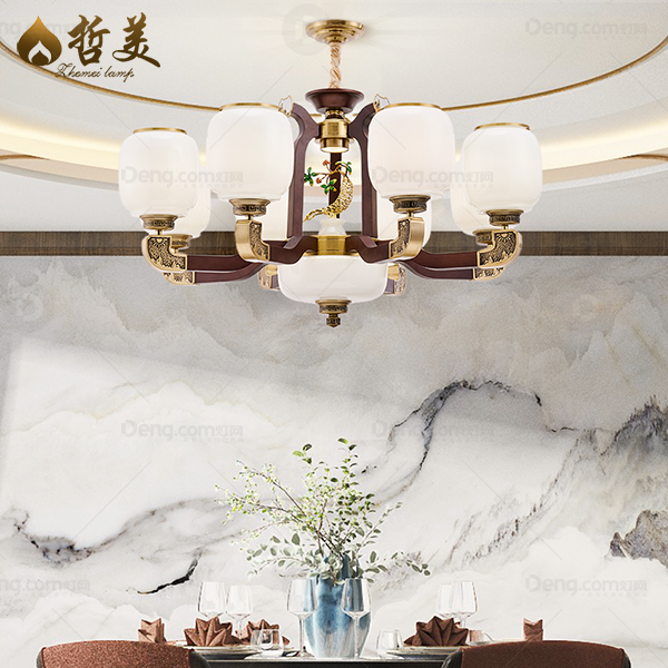 哲美铜餐厅染色新中式吊灯 头数:8头 型号:QA8361-8头