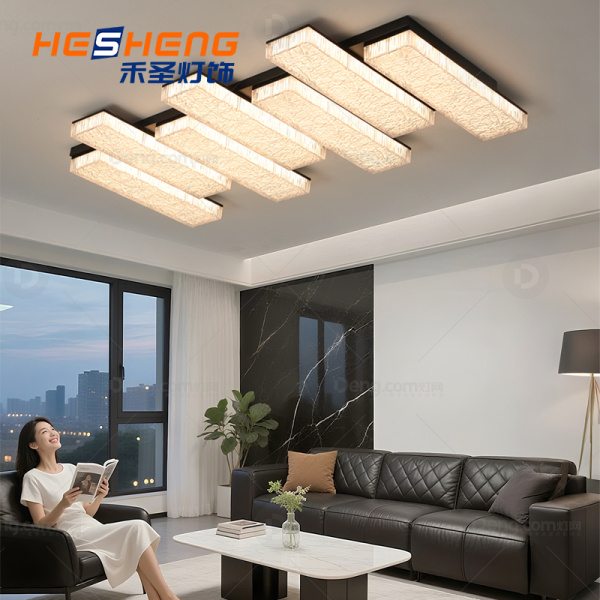 禾圣铁艺客厅电镀轻奢吸顶灯 型号:X996902/7-黑色+透明