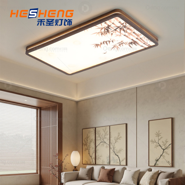 禾圣实木客厅其他/other宋式美学吸顶灯 型号:X996735/大长方-胡桃木色