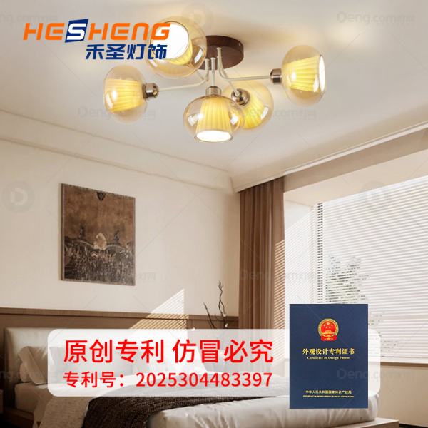 禾圣铁艺书房/卧室电镀中古风吸顶灯 型号:X996302/5-胡桃色+琥珀色