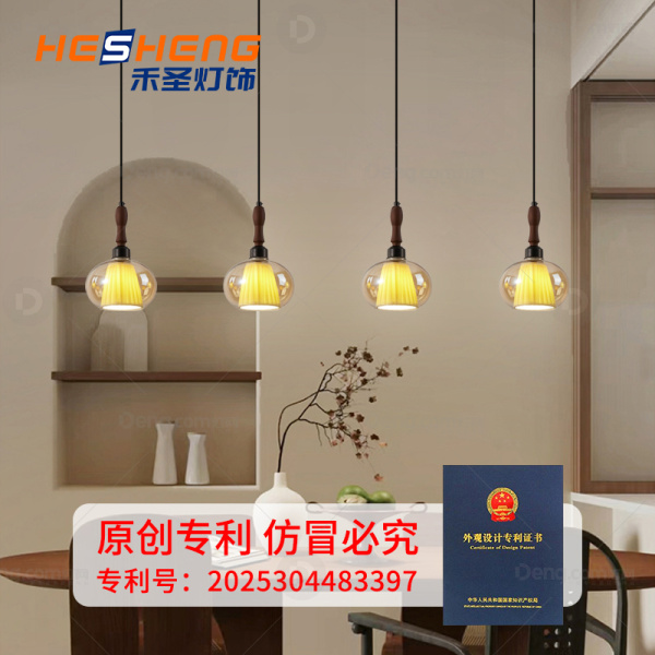 禾圣铁艺餐厅电镀中古风吊灯 头数:4头 型号:D996302/4-胡桃色+琥珀色
