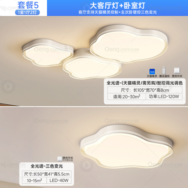 久觅铁艺客厅喷漆磨砂现代简约吸顶灯 型号:89123套餐/一室一厅/白色/天猫+三色