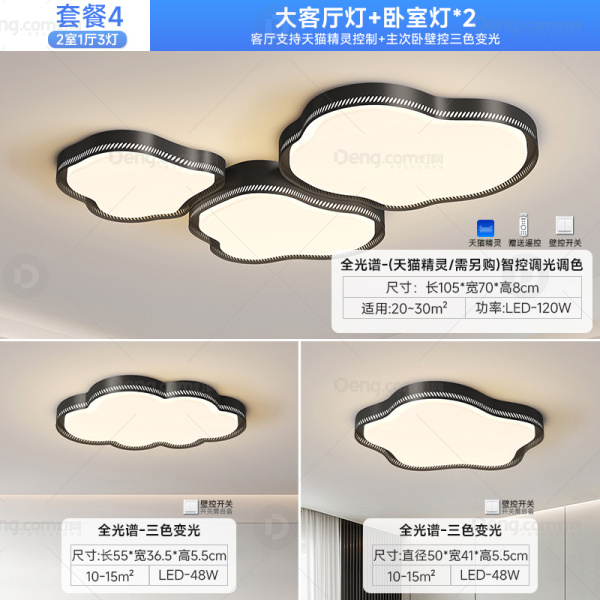 久觅铁艺客厅喷漆磨砂现代简约吸顶灯 型号:89123套餐/两室一厅/黑色/天猫+三色