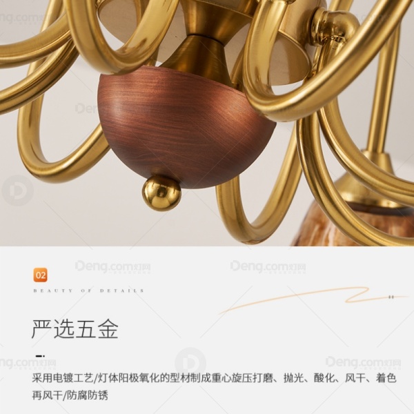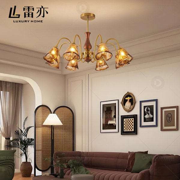 雷亦铁艺客厅电镀中古风吊灯 头数:8头 型号:7336-8头(铜本色+茶色)