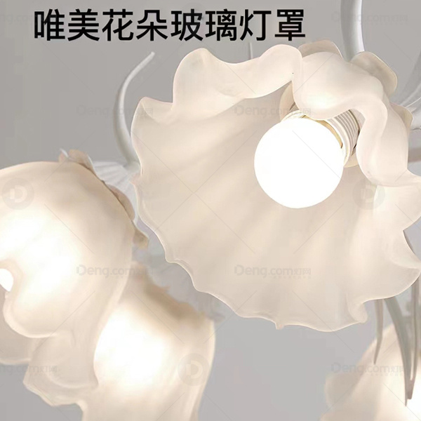 金琦丽玻璃书房/卧室喷漆磨砂奶油风吊灯 头数:4头 型号:20500-3+1白色