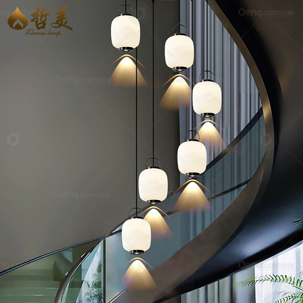 新中式 吊灯 楼梯灯 铜+玻璃 铜本色 黑擦金 吊线自由调节 多头可定制