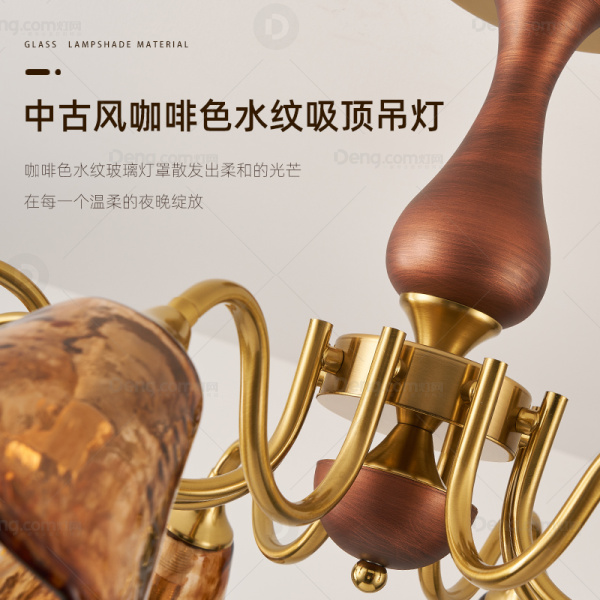 雷亦铁艺客厅电镀中古风吊灯 头数:8头 型号:7338-8头(铜本色)