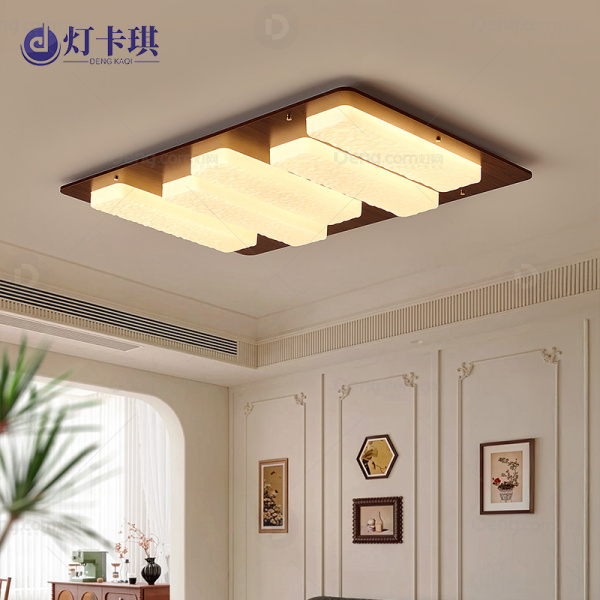 灯卡琪铁艺书房/卧室喷漆磨砂中古风吸顶灯 型号:3941/1000长方/胡桃木色/三色变光
