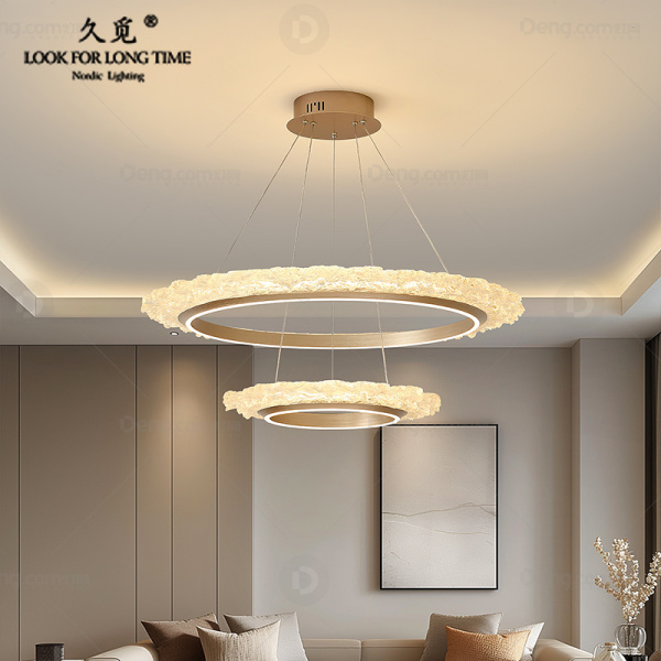 久觅铝材客厅喷漆磨砂现代简约吊灯 头数:2头 型号:3-5506/ø450+ø800/香槟金/三色变光