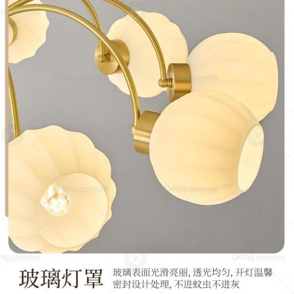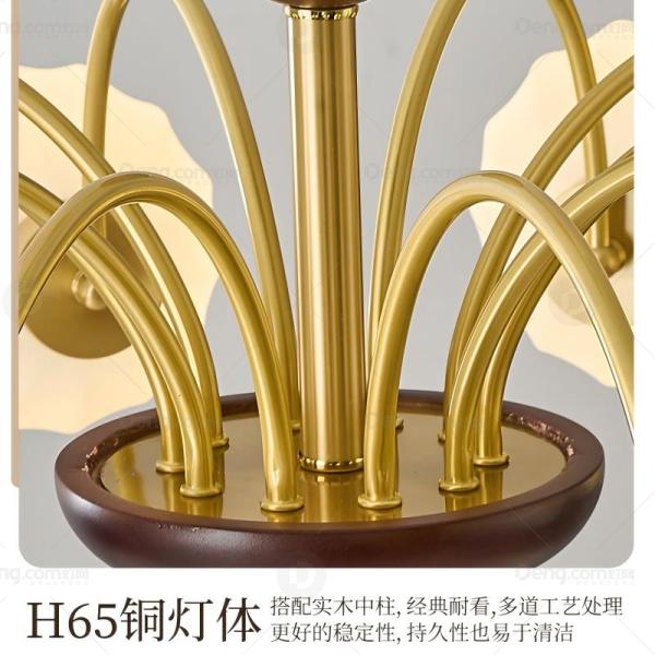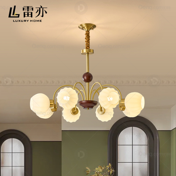 雷亦铜客厅电镀中古风吊灯 头数:8头 型号:D6882-8头(铜+橡木+玻璃罩)
