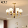 雷亦铜书房/卧室电镀中古风吊灯 头数:6头 型号:D6880-6头(铜+橡木+玻璃罩)