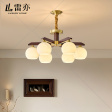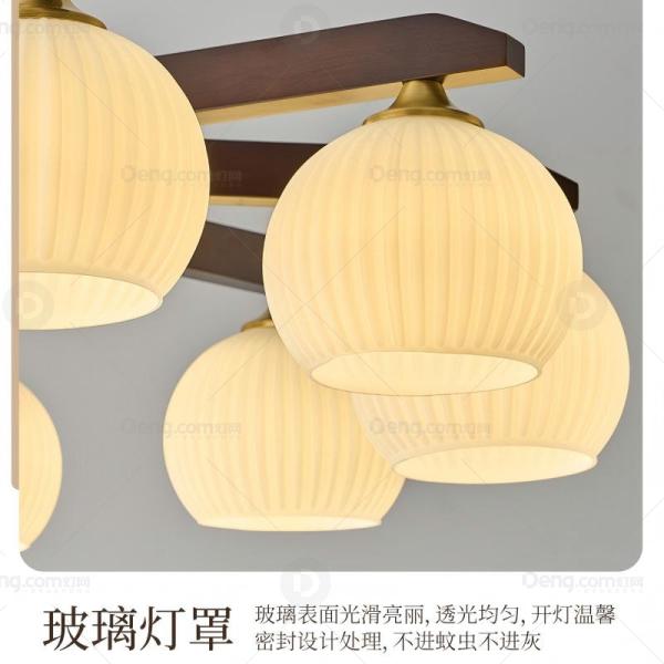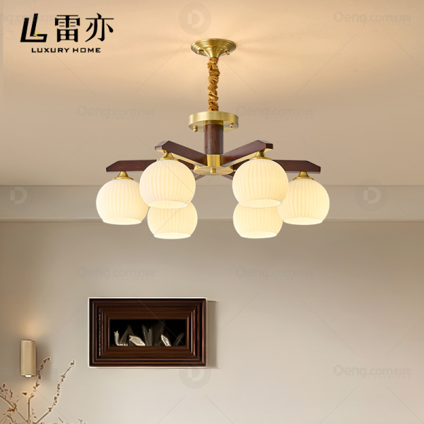 雷亦铜餐厅电镀中古风吊灯 头数:6头 型号:D6879-6头(铜+橡木+玻璃罩)