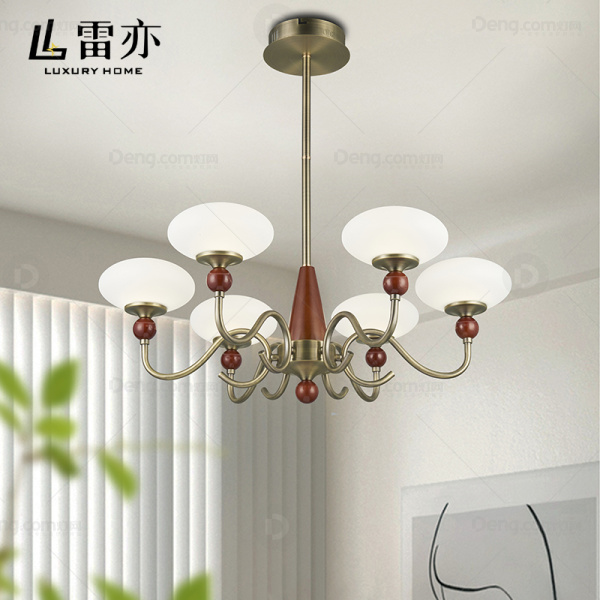 雷亦铁艺餐厅喷手漆中古风吊灯 头数:6头 型号:D6868-6头朝上(红木+古铜色)