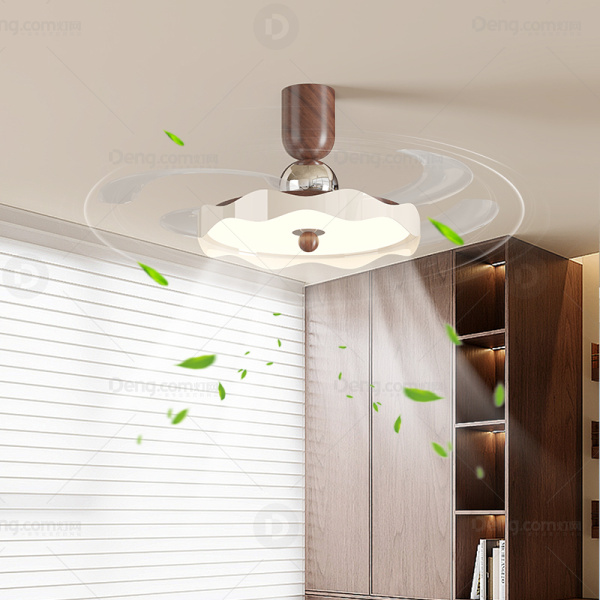 达辰灯饰铁艺餐厅喷漆磨砂中古风风扇灯 头数:1头 型号:MY-283/42寸/半吊/隐形风扇灯/木纹色