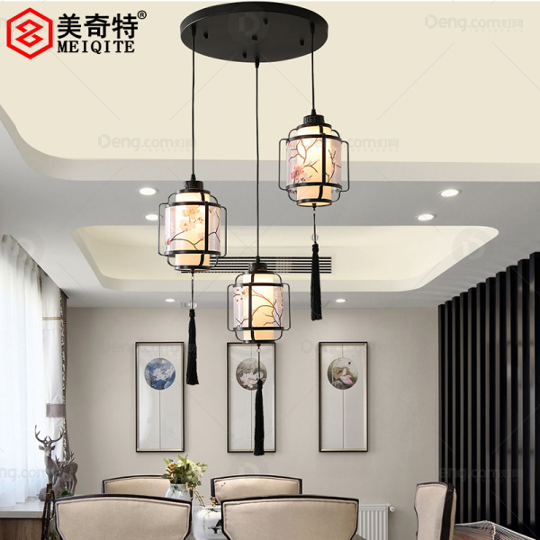 美奇特铁艺餐厅喷漆磨砂新中式吊灯 头数:3头 型号:MQT6838-3头黑色梅花
