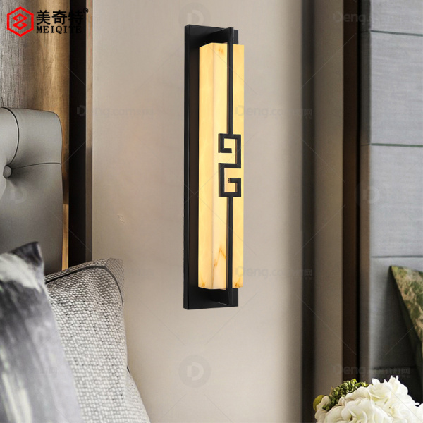美奇特亚克力书房/卧室喷漆磨砂新中式壁灯 头数:单头 型号:MQT9615-800黑色仿云石灯罩