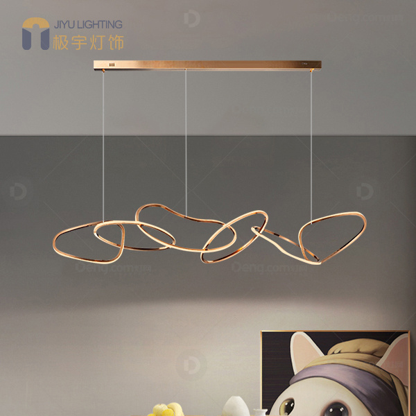 极宇不锈钢餐厅其他/other现代简约吊灯 头数:6头 型号:JY1801环环相扣餐吊-150长不锈钢-三色光