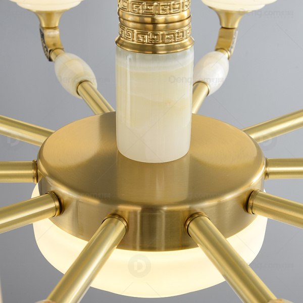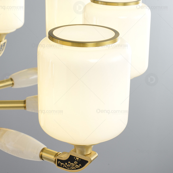新中式铜+玉石+玻璃灯罩配防尘盖