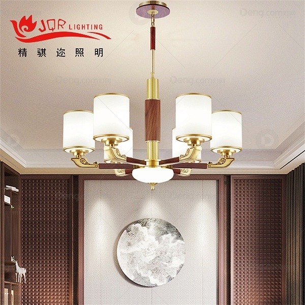 精骐迩铜书房/卧室染色新中式吊灯 头数:6头 型号:JQR8072-6-铜+木