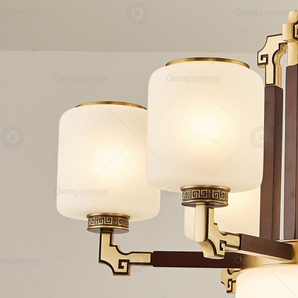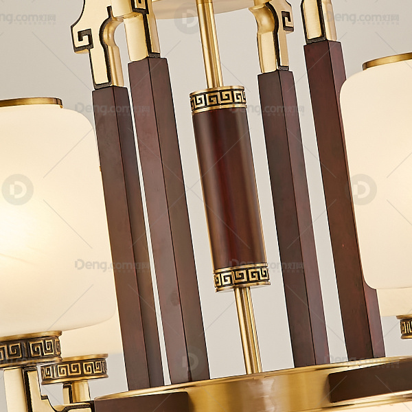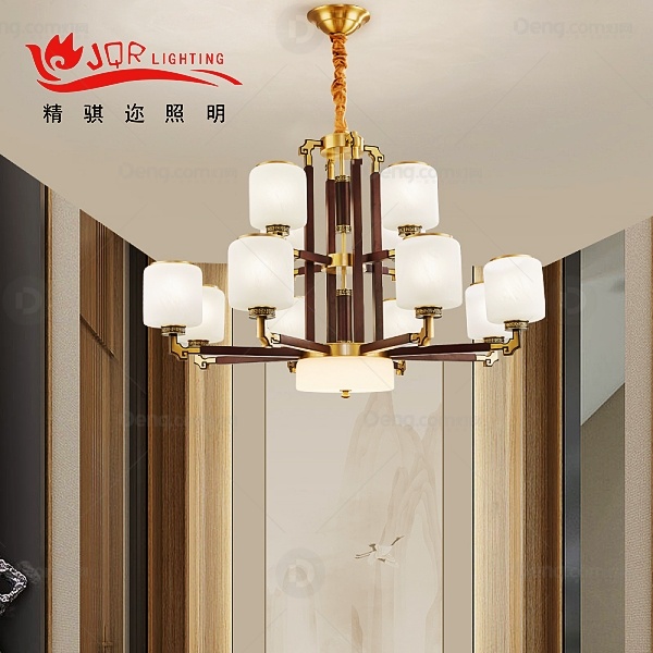 精骐迩铜高层/复式染色新中式吊灯 头数:12头 型号:JQR8919A款玻璃罩-10+5-铜+木