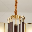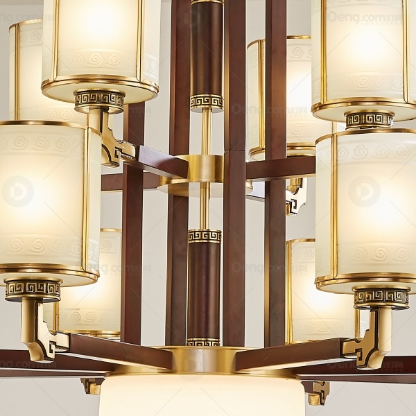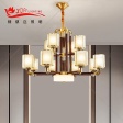 精骐迩铜高层/复式染色新中式吊灯 头数:12头 型号:JQR8919B款焊锡罩-10+5-铜+木