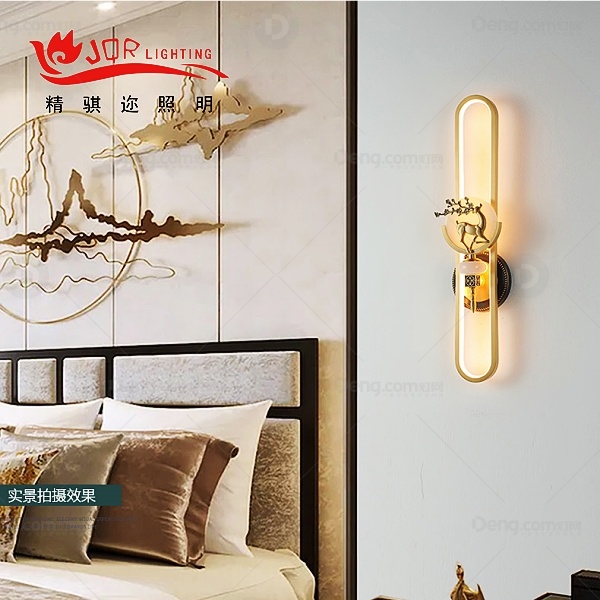 精骐迩铜客厅染色新中式壁灯 头数:单头 型号:JQR817-大号-右鹿款/全铜