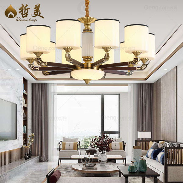 哲美实木客厅染色新中式吊灯 头数:10头 型号:9808-10头