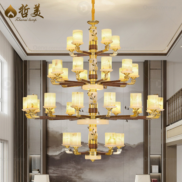哲美铜别墅/酒店大堂染色新中式吊灯 头数:24头以上 型号:ZM2206-35头四层