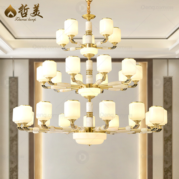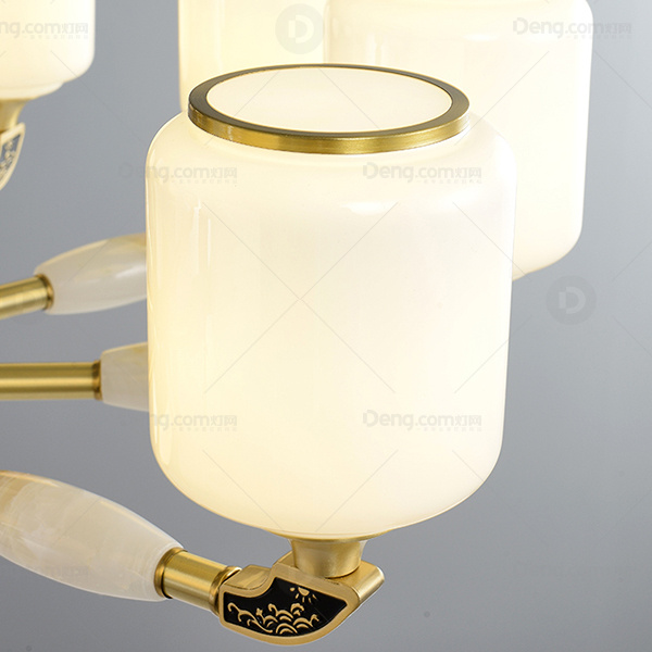 新中式 吊灯 铜+玉石灯臂 大灯 简约造型