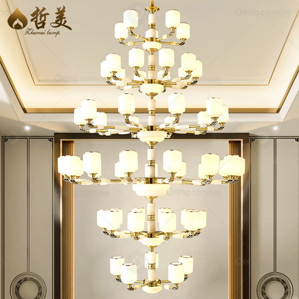 哲美铜别墅/酒店大堂染色新中式吊灯 头数:24头以上 型号:ZM9918-55头六层