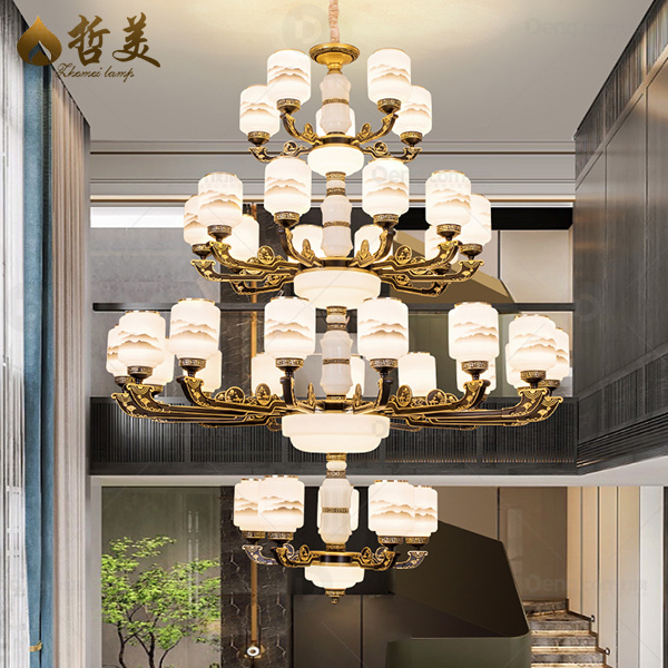 哲美锌合金别墅/酒店大堂喷漆磨砂新中式吊灯 头数:24头以上 型号:ZM8919-35头四层
