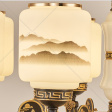 新中式 吊灯 锌合金压铸灯臂 黑擦金 山川水墨印花防尘灯罩