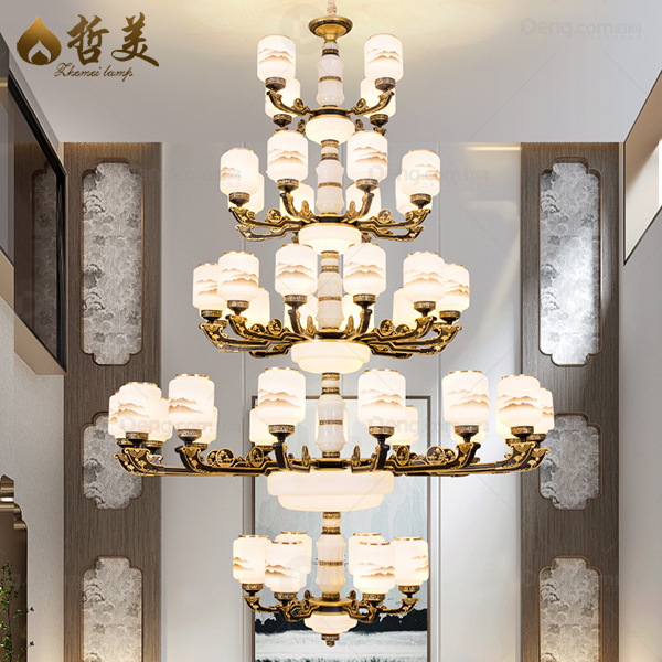哲美锌合金别墅/酒店大堂喷漆磨砂新中式吊灯 头数:24头以上 型号:ZM8919-45头五层