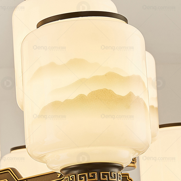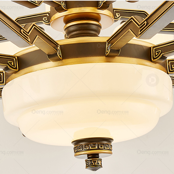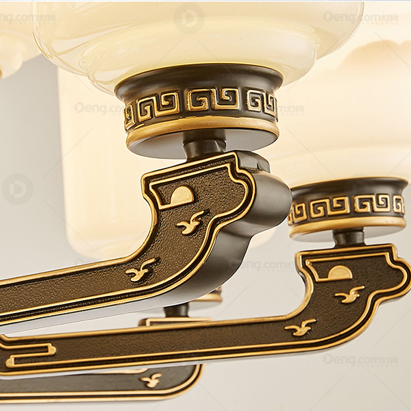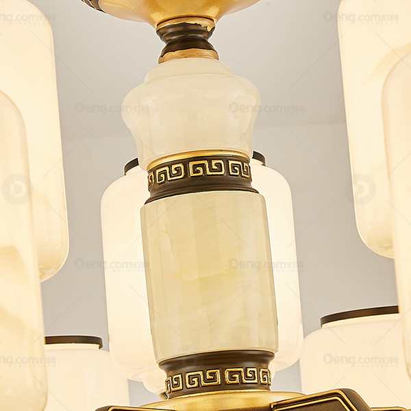 新中式吊灯 锌合金雕花灯臂 玉石中柱 防尘罩