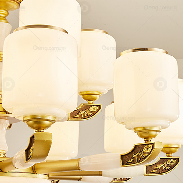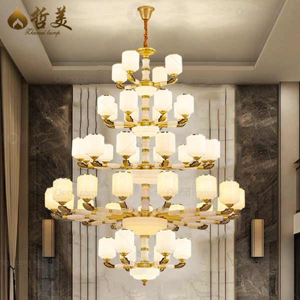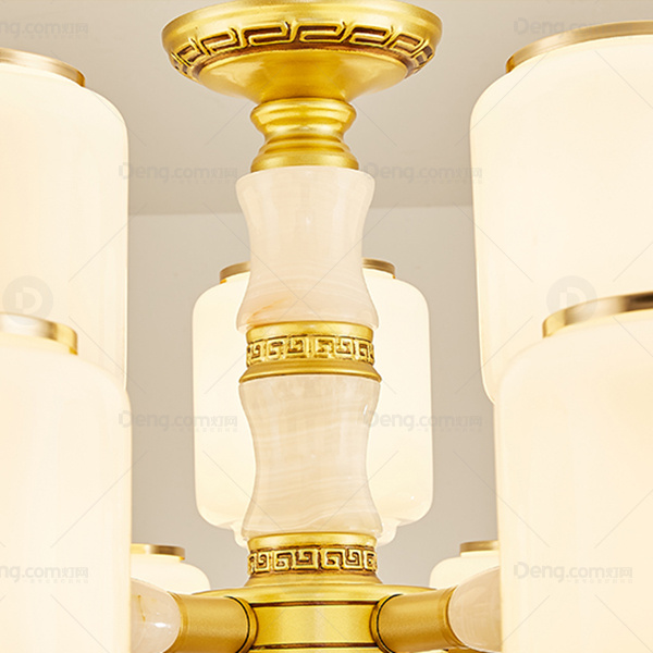 新中式 吊灯 玉石+锌合金 玉石中柱 防尘罩