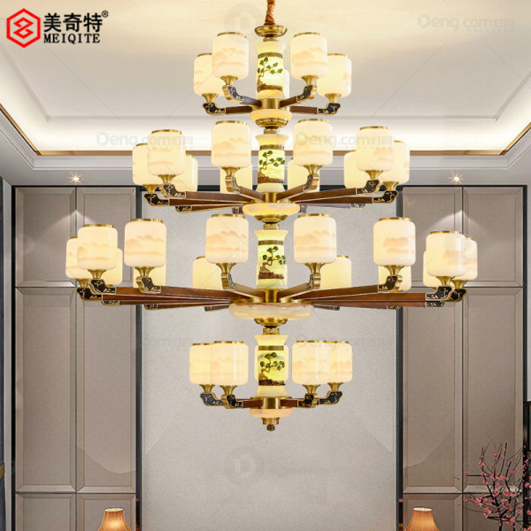 美奇特铜别墅/酒店大堂染色新中式吊灯 头数:24头以上 型号:MQT6811-35头