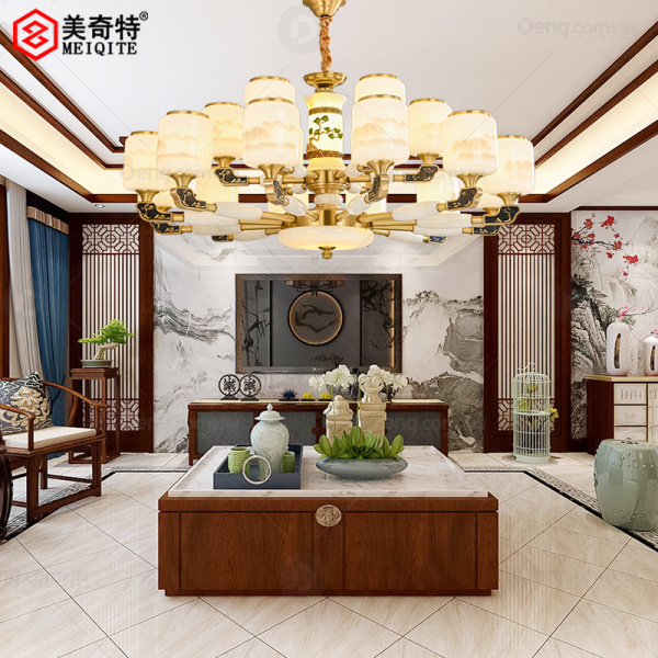 美奇特铜客厅染色新中式吊灯 头数:18头 型号:MQT6812-12+6头