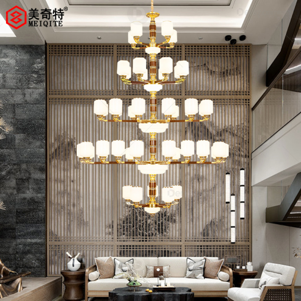 美奇特锌合金高层/复式电镀新中式吊灯 头数:24头以上 型号:MQT3911-45头五层