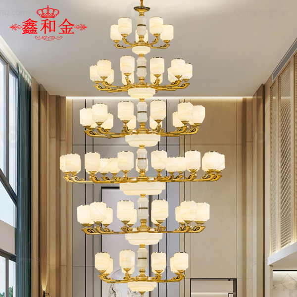 鑫和金锌合金别墅/酒店大堂喷漆磨砂新中式吊灯 头数:24头以上 型号:33136-8+12+18+12+10+5配防尘盖