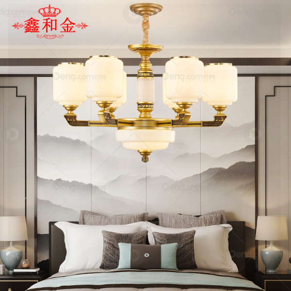 鑫和金锌合金书房/卧室喷漆磨砂新中式吊灯 头数:6头 型号:33387-6
