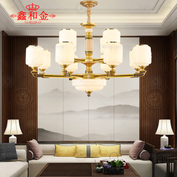 鑫和金锌合金客厅喷漆磨砂新中式吊灯 头数:12头 型号:33387-8+4