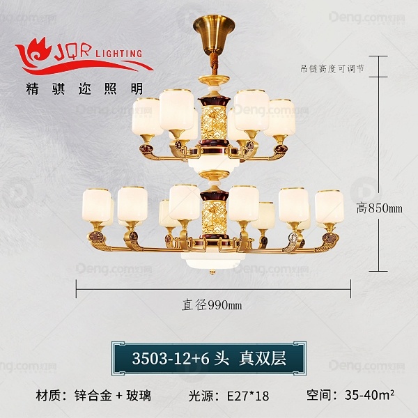 精骐迩锌合金客厅压铸新中式吊灯 头数:18头 型号:JQR3503-12+6(真两层)18头