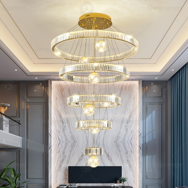 卡梵淇铁艺别墅/酒店大堂电镀轻奢吊灯 头数:1头 型号:9203-1200+1000+800+600+400五层