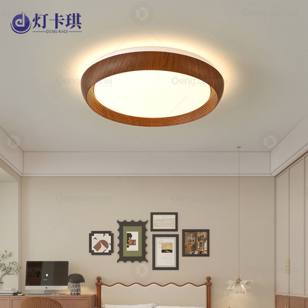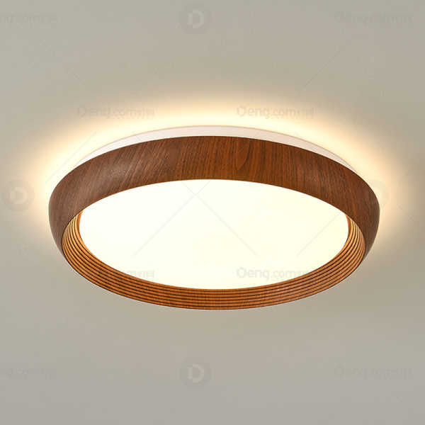 灯卡琪铁艺书房/卧室喷漆磨砂中古风吸顶灯 型号:3802/500圆C款/胡桃木色+白/三色变光