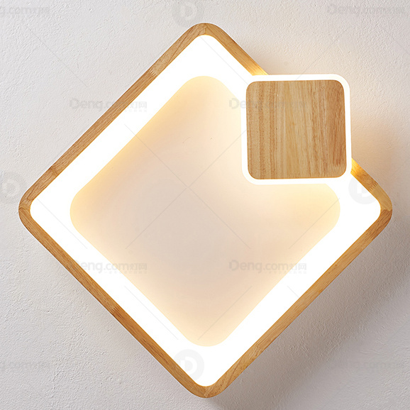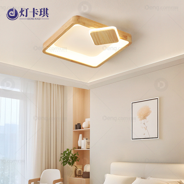 灯卡琪木艺书房/卧室喷漆磨砂中古风吸顶灯 型号:HD-M3236/520方/原木色/三色变光