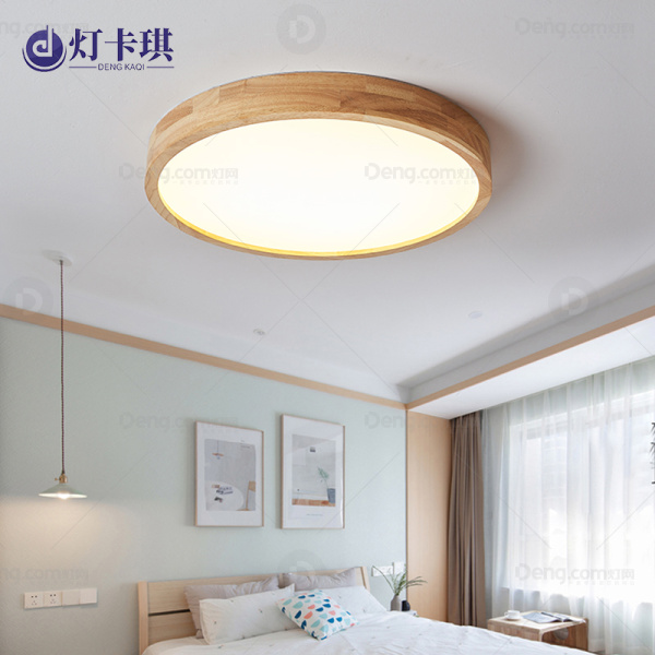 灯卡琪实木走廊/过道/玄关喷漆磨砂北欧原木吸顶灯 型号:HD-M3085/300圆/原木色/三色变光
